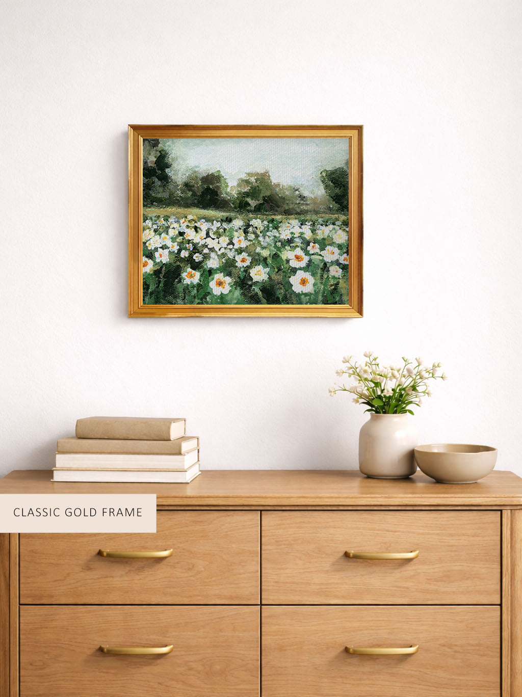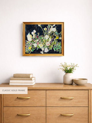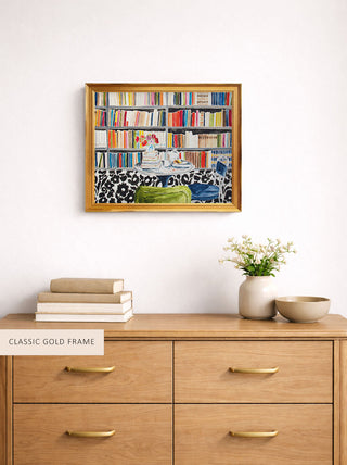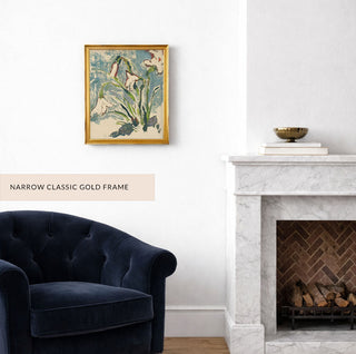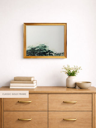 We offer fine art giclée prints, archival materials, and 20+ designer-selected, handcrafted wood frame styles.