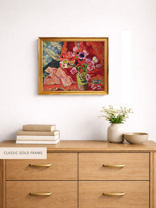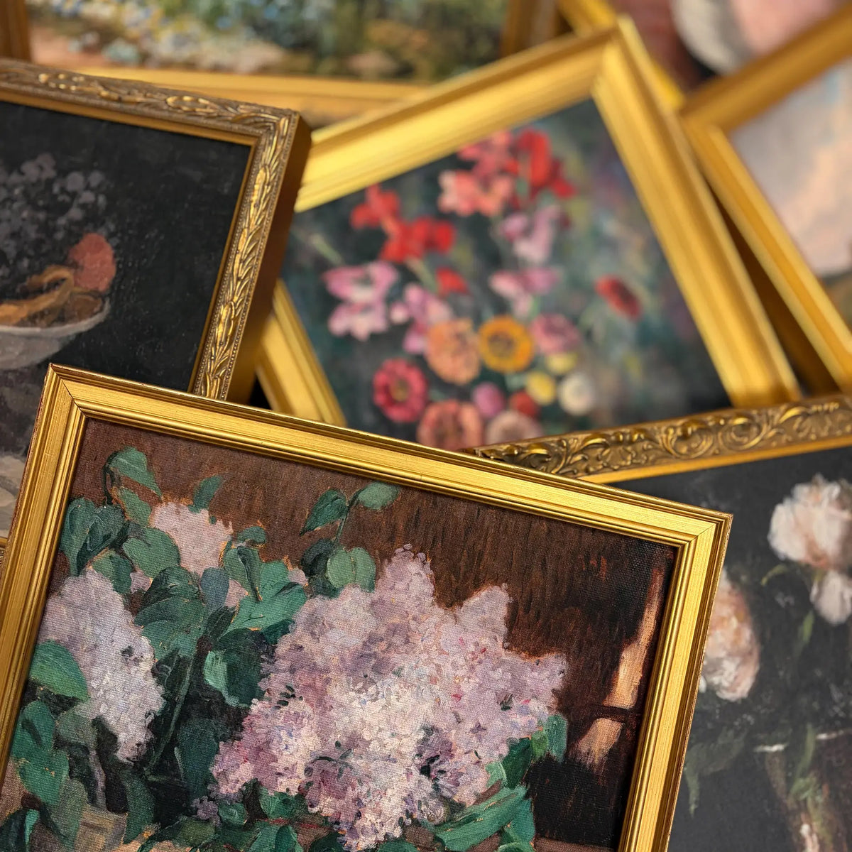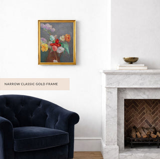 Roses and Peonies in the Classic Silver Frame, Pink Flowers in a Blue Vase in the Gold Panel Frame, Asters in the Embossed Gold Frame