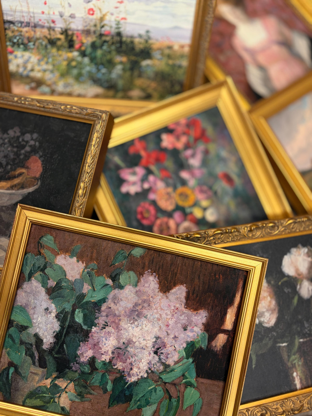 "I was so inspired by the gold-framed art I'd see in antique stores," shares Amy, founder of Museum Quality Art.