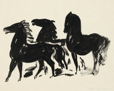 THREE BLACK HORSES was originally painted by Leo Gestel in 1935-1936. The original artwork, entitled Three Black Horses Looking to the Left, may be viewed at the Rijksmuseum.