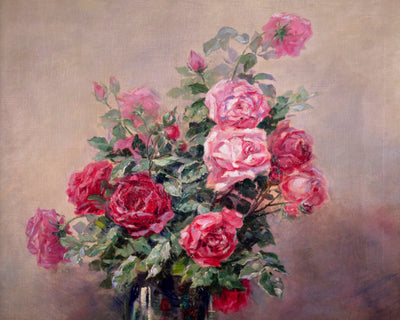 A BOWL OF RED AND PINK ROSES was originally painted by an unknown artist of the French School, 19th century. The original artwork, entitled A Bowl of Red and Pink Roses, is part of a private collection.
