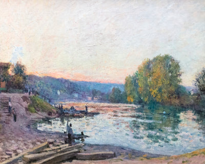 BANKS OF THE SEINE, SUNLIGHT EFFECT AT DUSK was originally painted by Alfred Sisley, n.d. The original artwork, entitled Banks of the Seine, Sunlight Effect at Dusk, is part of a private collection.