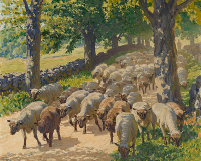 FLOCK OF SHEEP was originally painted by Edward Charles Volkert, c. 1920s. The original artwork, entitled Flock of Sheep, may be viewed at the Cincinnati Art Museum.