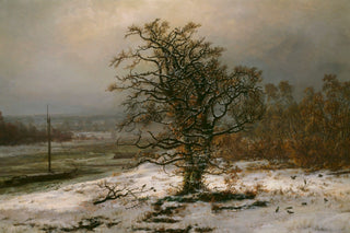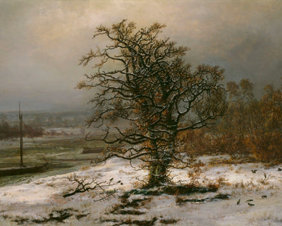 OAK TREE BY THE ELBE IN WINTER was originally painted by Johan Christian Dahl in 1853. The original artwork, entitled Oak Tree by the Elbe in Winter, may be viewed at the National Museum of Art in Norway.