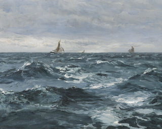 SAIL ON A ROUGH SEA was originally painted by Henry Moore before 1895. The original artwork, entitled Sail on a Rough Sea, is part of a private collection.