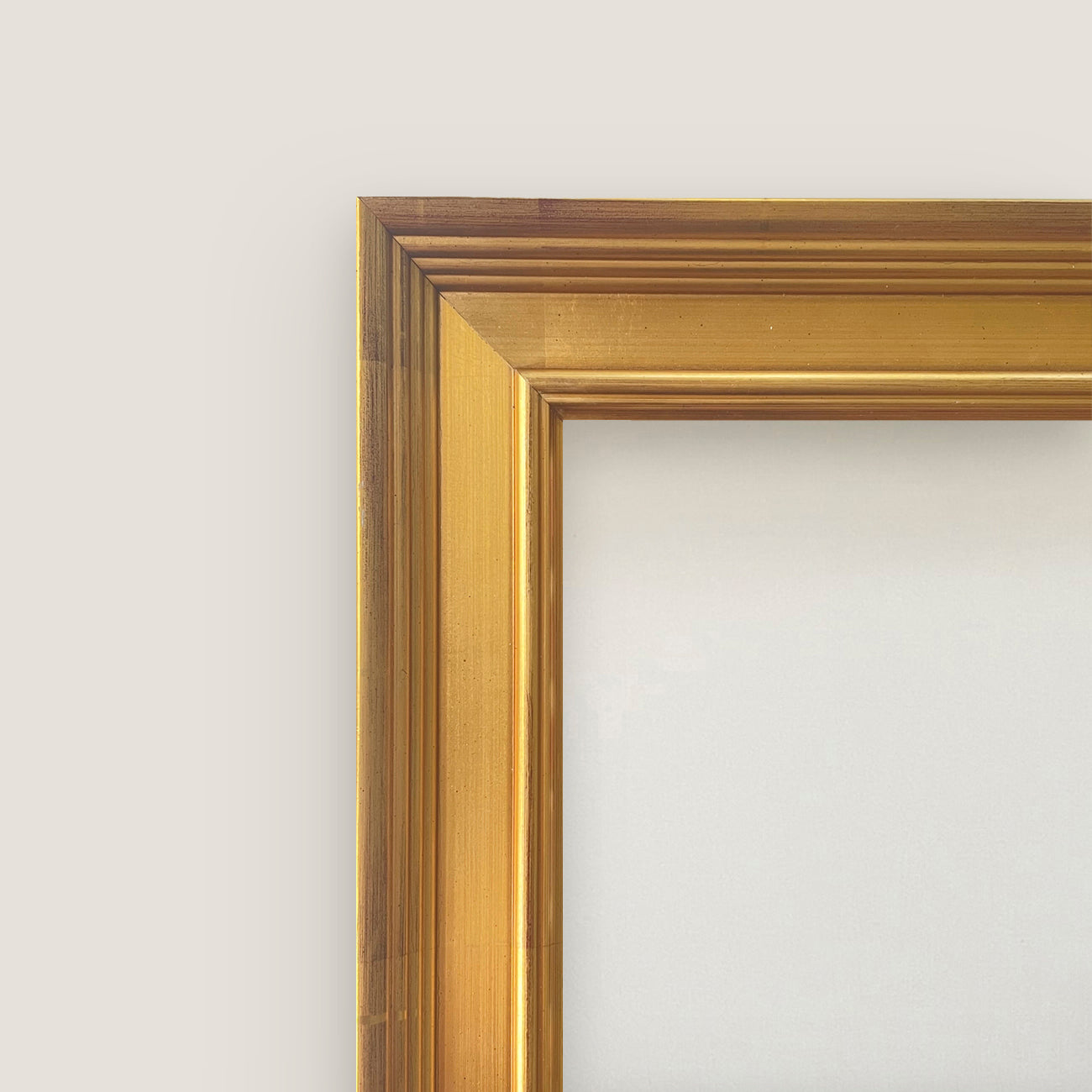 A timeless wood frame style leafed and gilded in gold with a subtle satin finish.